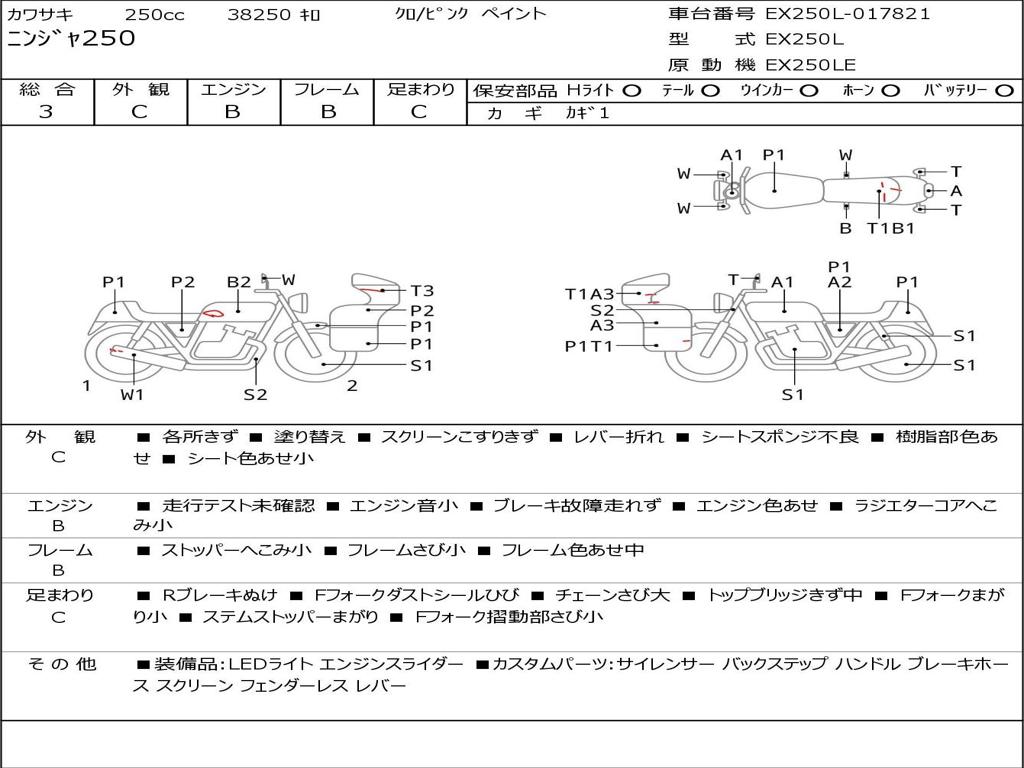 Номер рамы / VIN | EX250L-017821 |