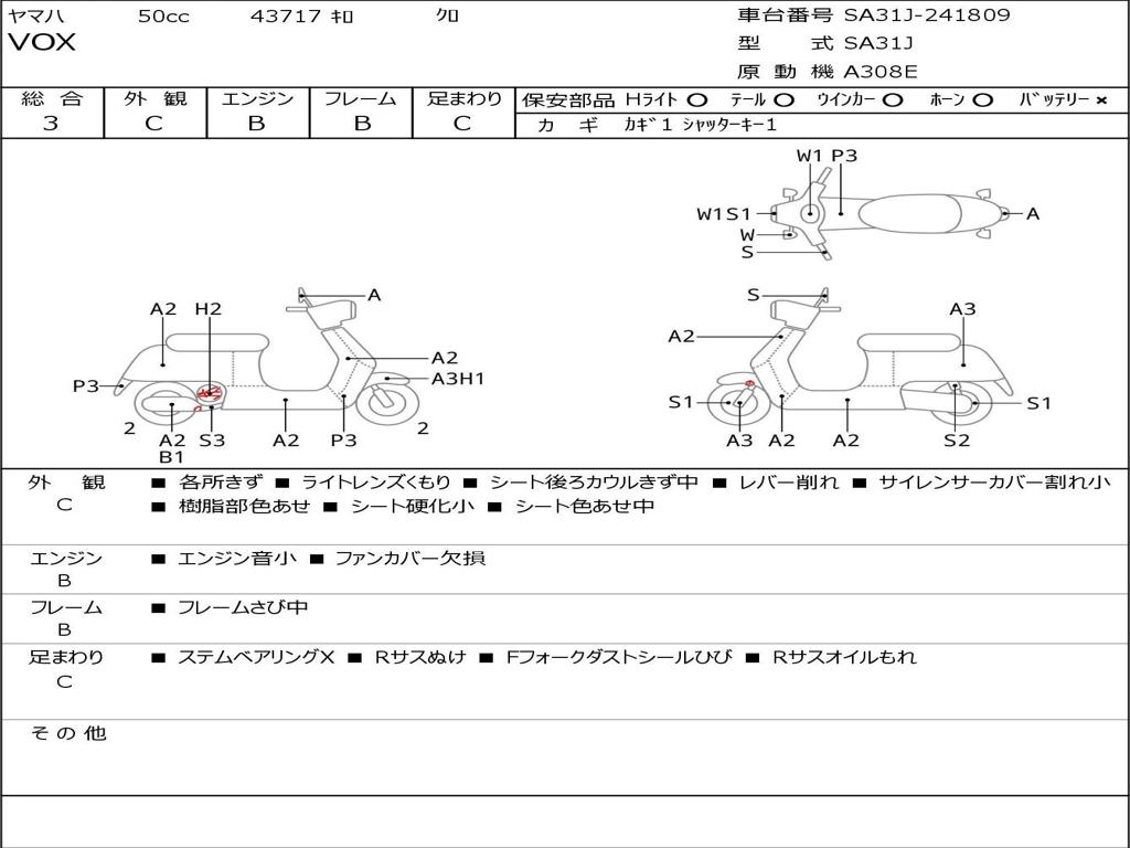 | Номер рамы / VIN | SA31J-241809 |