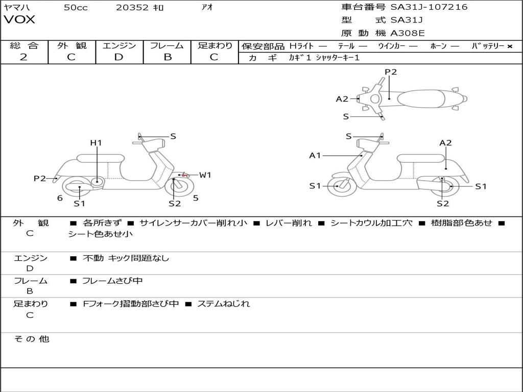 | Номер рамы / VIN | SA31J-107216 |