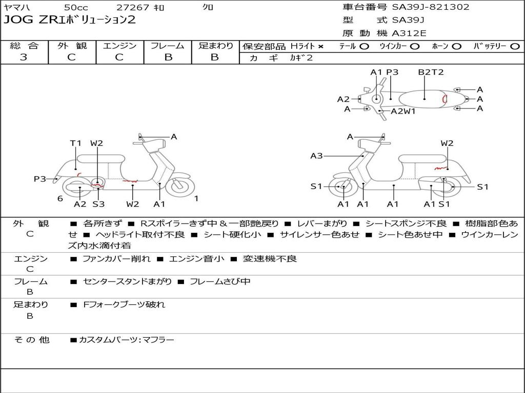 | Номер рамы / VIN | SA39J-821302 |
