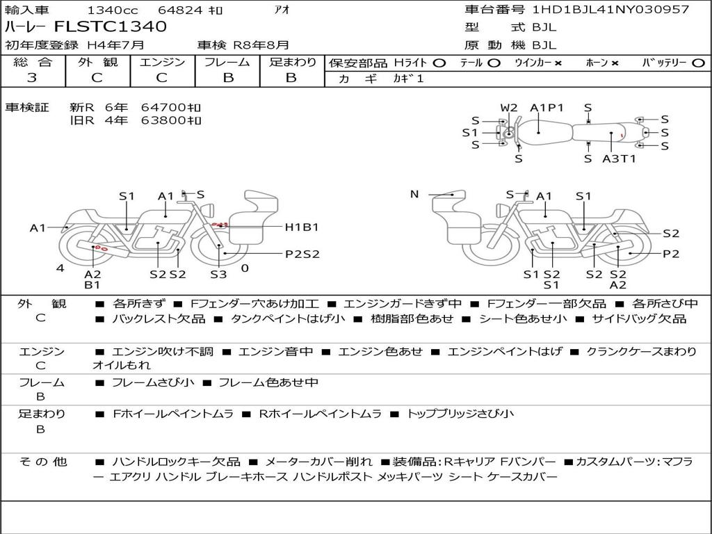 | Номер рамы / VIN | 1HD1BJL41NY030957 |