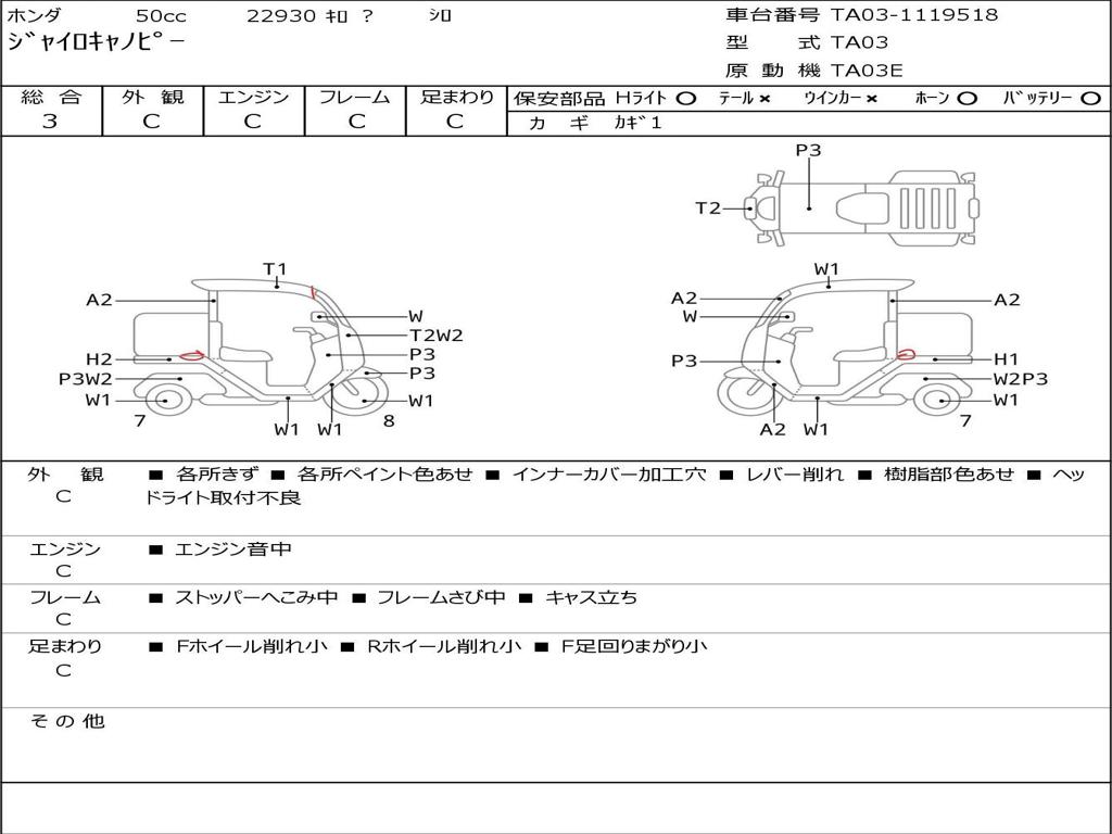 | Номер рамы / VIN | TA03-1119518 |