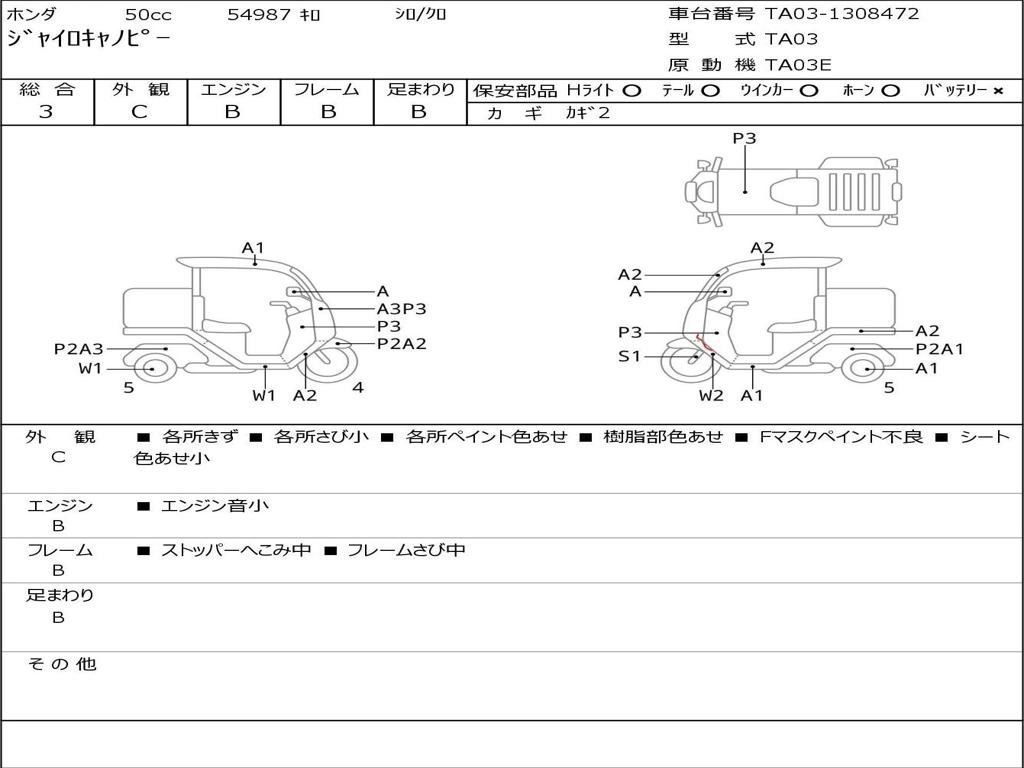 | Номер рамы / VIN | TA03-1308472 |