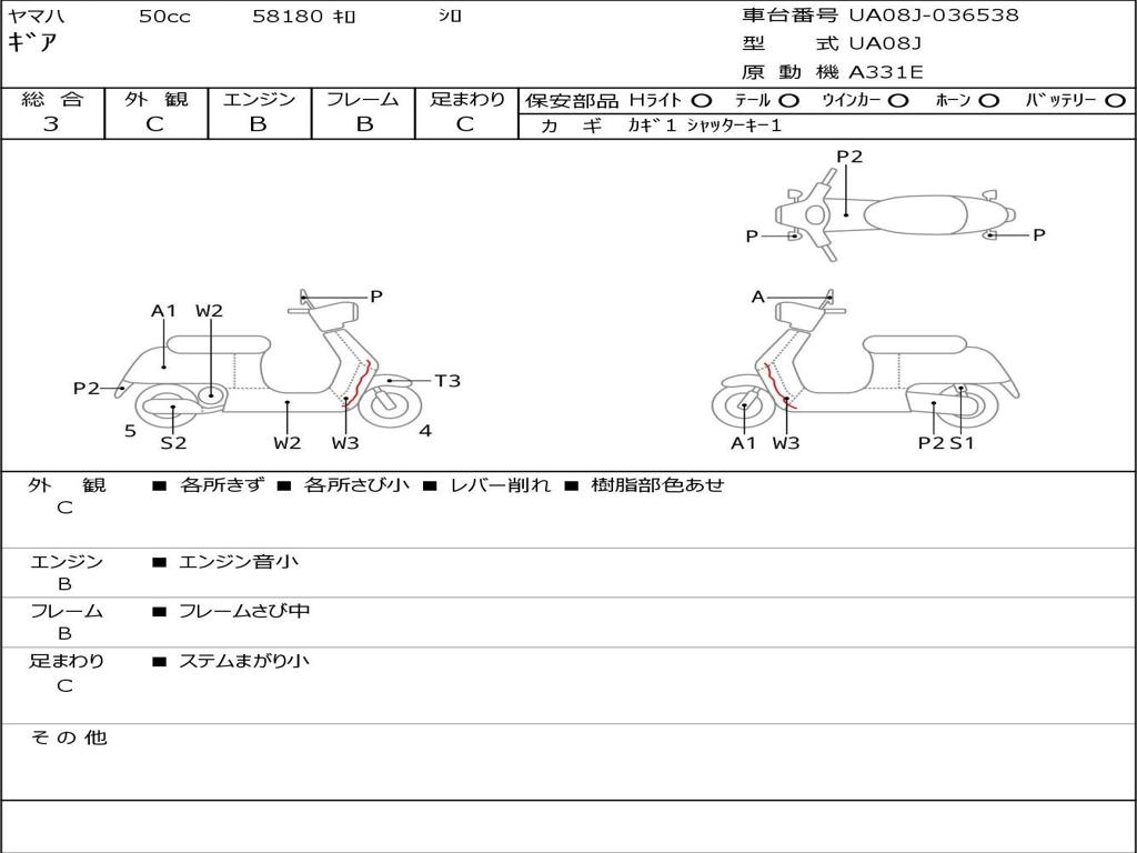 | Номер рамы / VIN | UA08J-036538 |