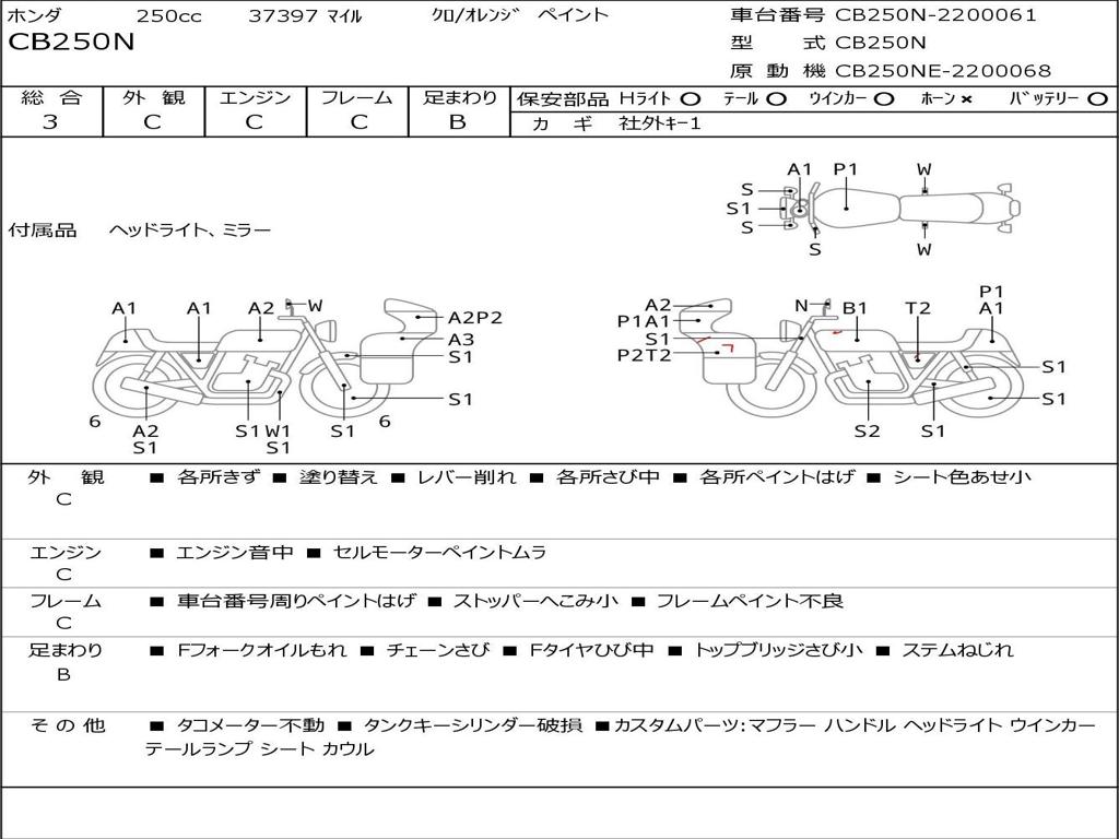 | Номер рамы / VIN | CB250N-2200061 |