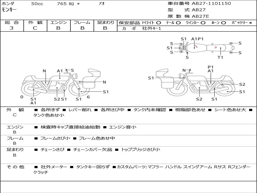 | Номер рамы / VIN | AB27-1101150 |