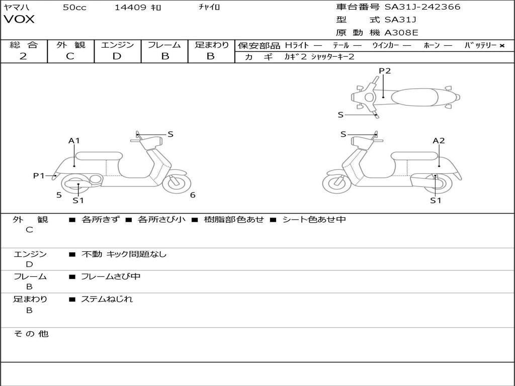 | Номер рамы / VIN | SA31J-242366 |