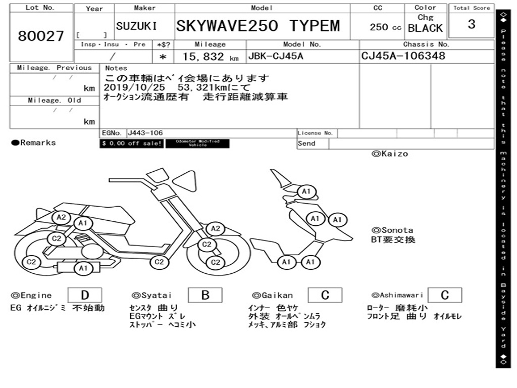 | Номер рамы / VIN | CJ45A-106348 |