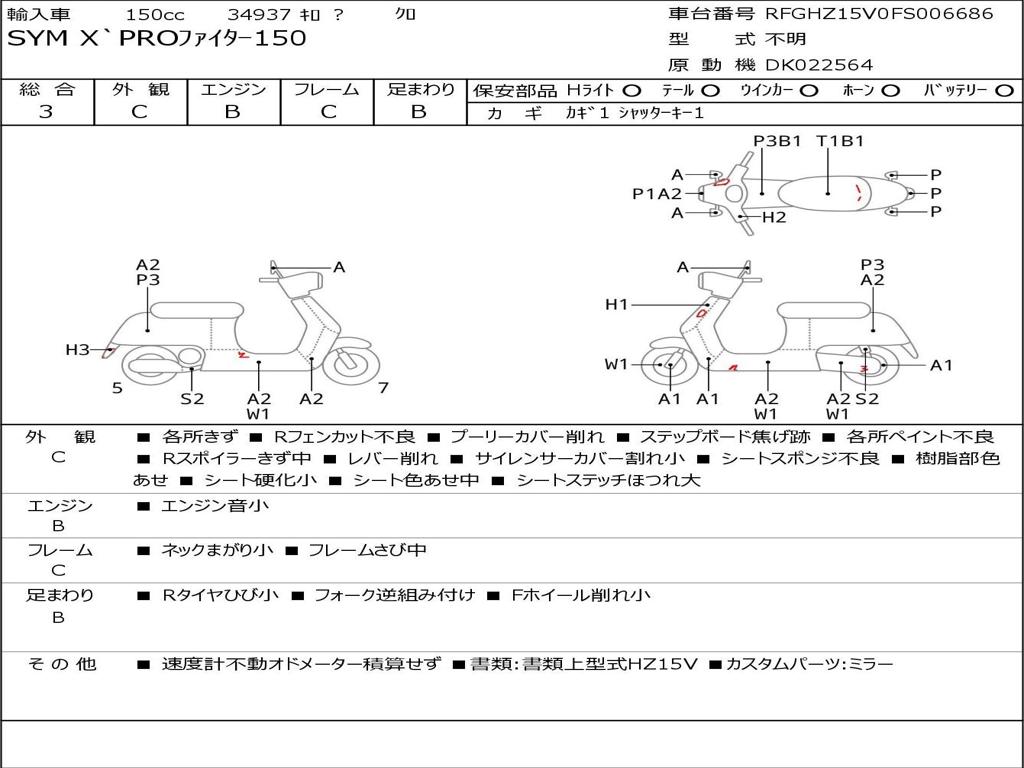 | Номер рамы / VIN | RFGHZ15V0FS006686 |