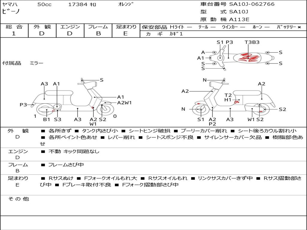 | Номер рамы / VIN | SA10J-062766 |