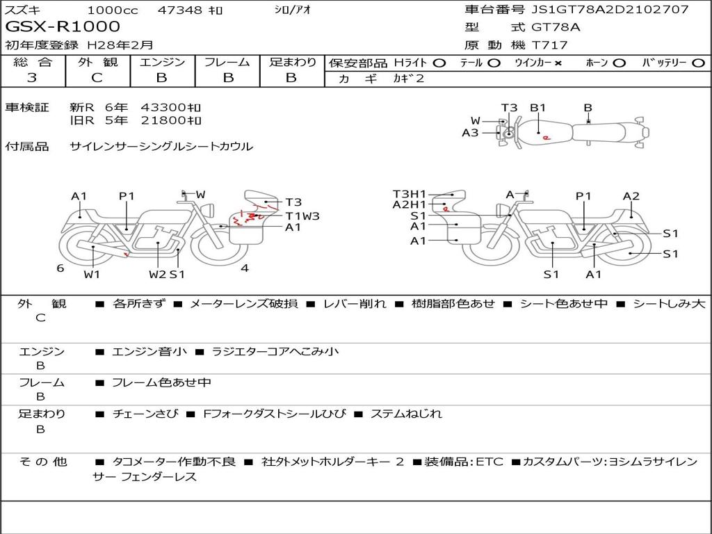 | Номер рамы / VIN | JS1GT78A2D2102707 |