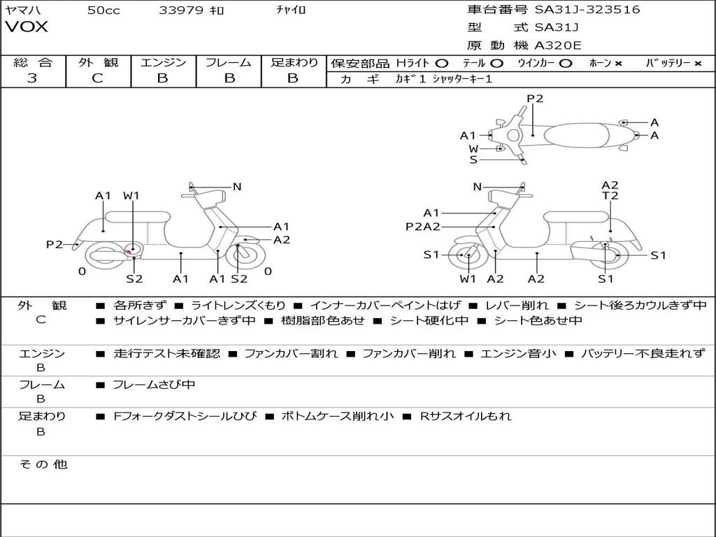 | Номер рамы / VIN | SA31J-323516 |