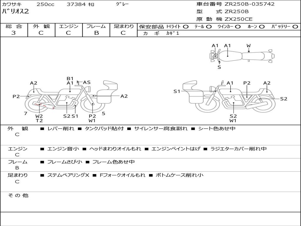 | Номер рамы / VIN | ZR250B-035742 |