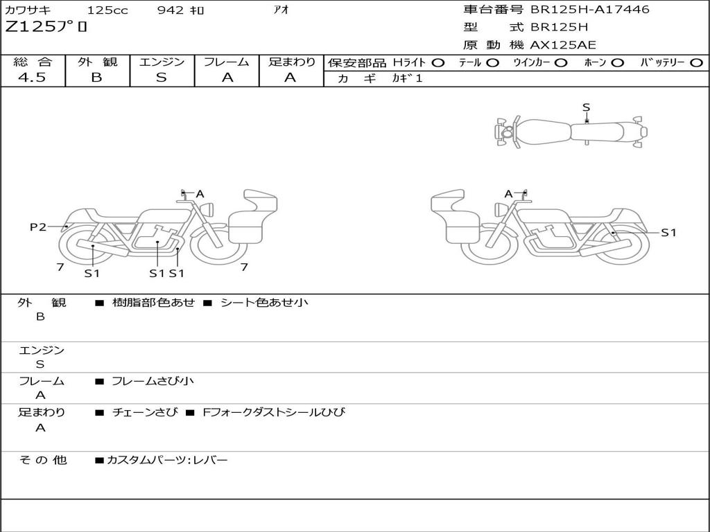 | Номер рамы / VIN | BR125H-A17446 |