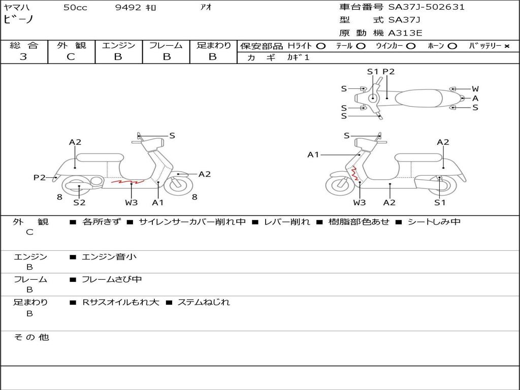 | Номер рамы / VIN | SA37J-502631 |