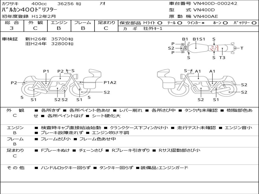 | Номер рамы / VIN | VN400D-000242 |