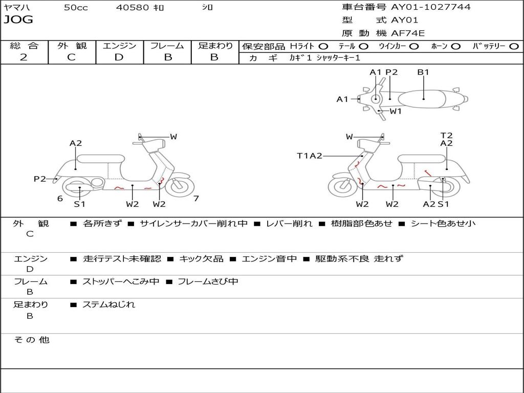 | Номер рамы / VIN | AY01-1027744 |
