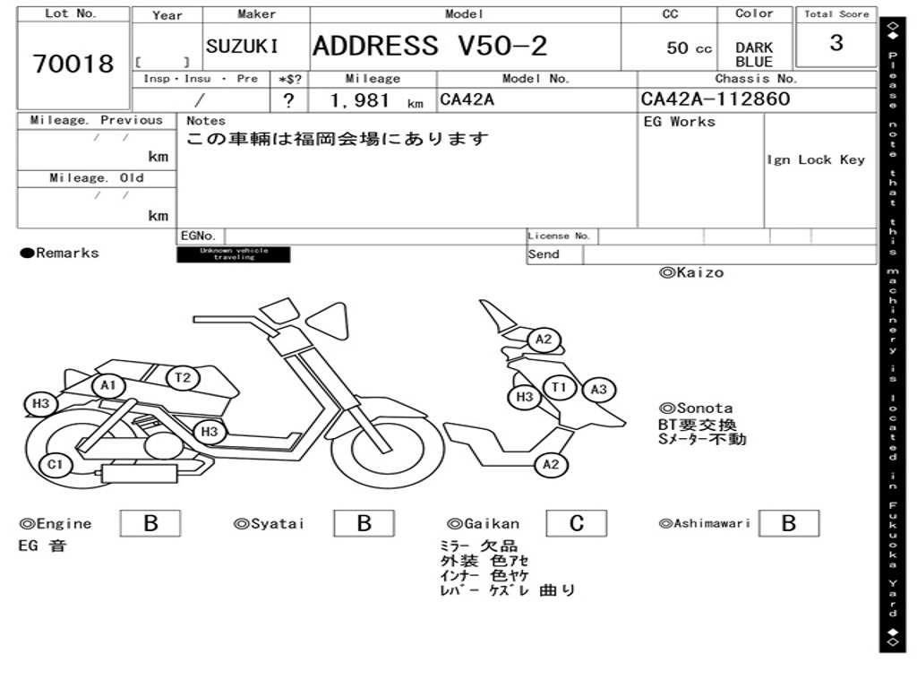 | Номер рамы / VIN | CA42A-112860 |