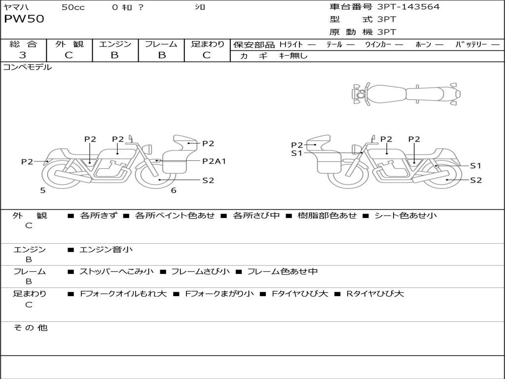 | Номер рамы / VIN | 3PT-143564 |