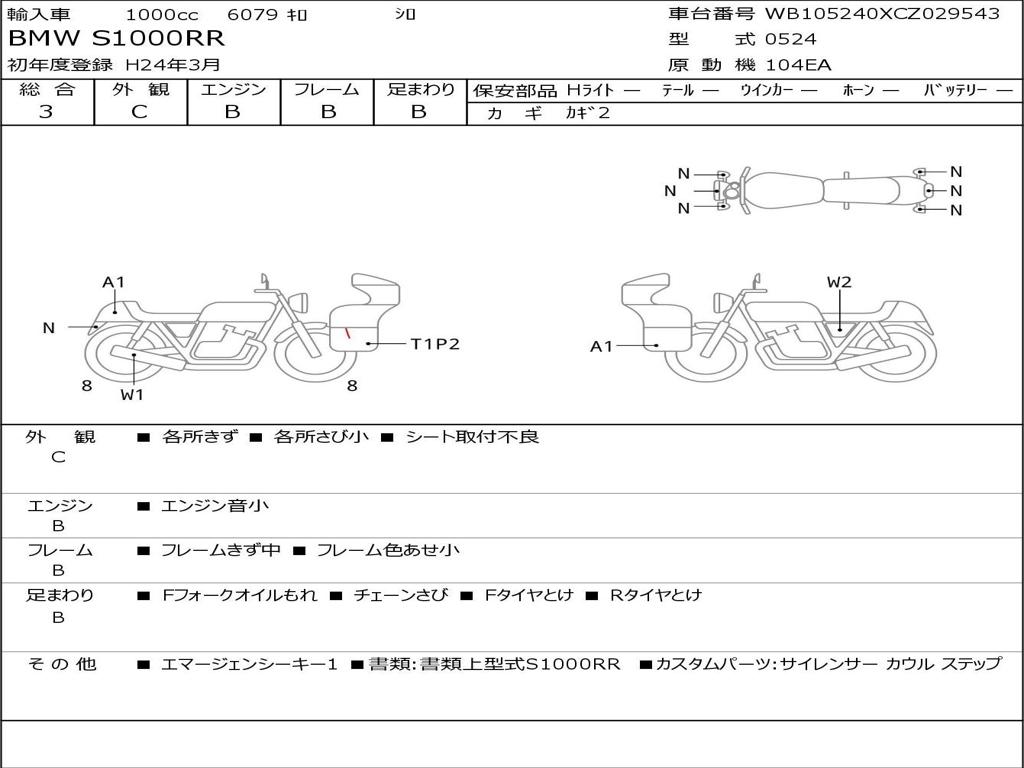 | Номер рамы / VIN | WB105240XCZ029543 |