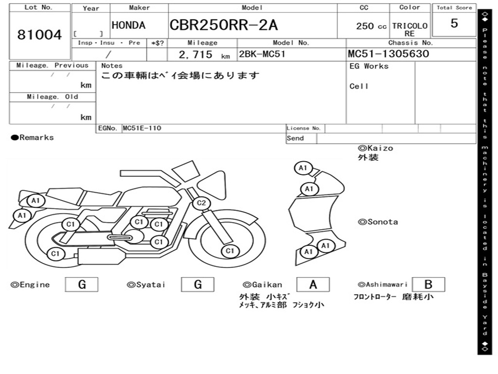 Номер рамы / VIN | MC51-1305630 |