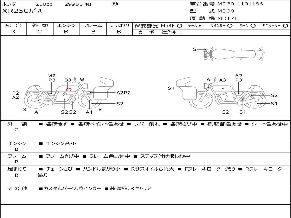 | Номер рамы / VIN | MD30-1101186 |