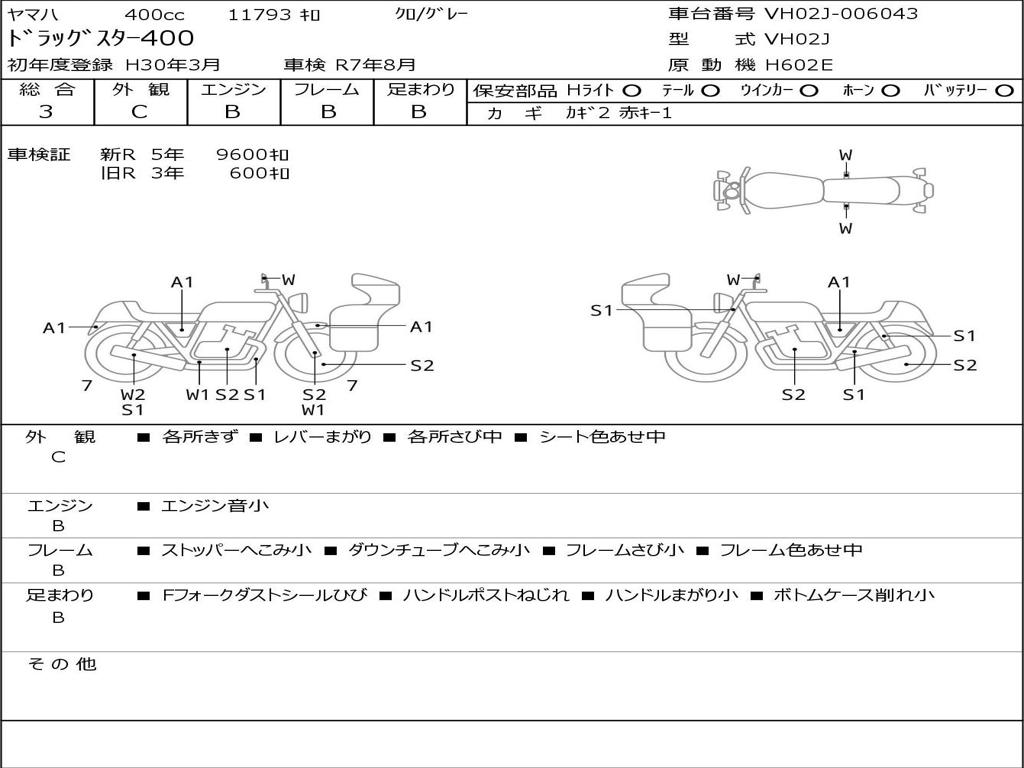 | Номер рамы / VIN | VH02J-006043 |