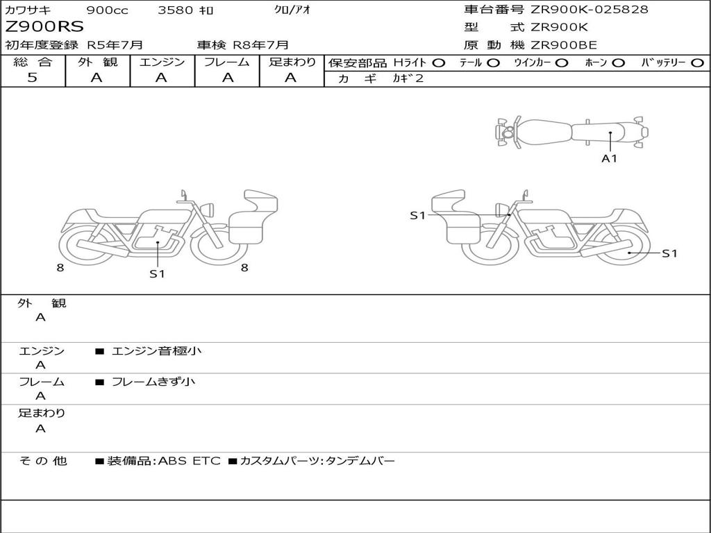 | Номер рамы / VIN | ZR900K-025828 |