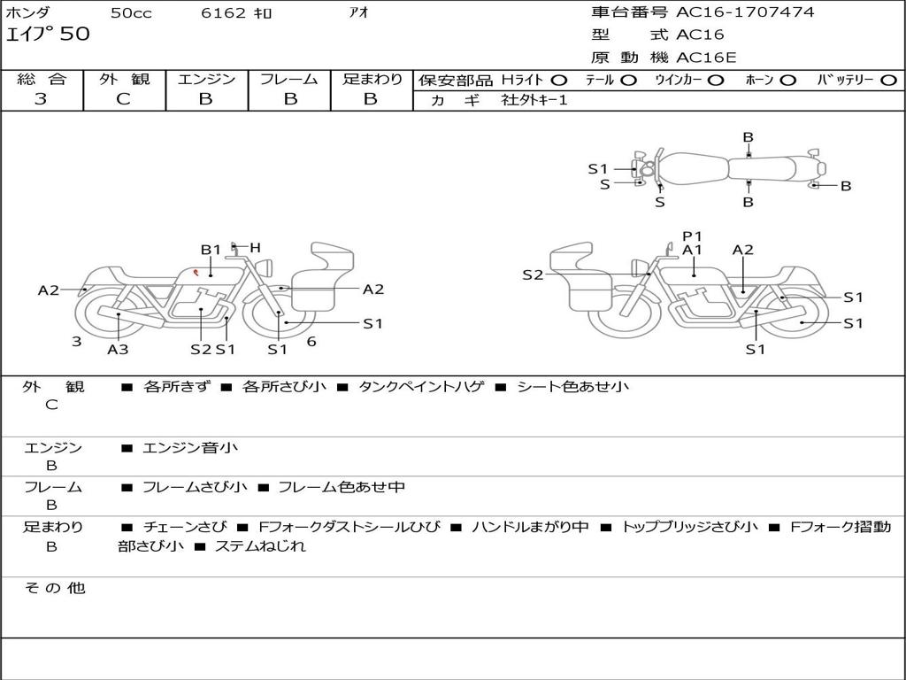 | Номер рамы / VIN | AC16-1707474 |