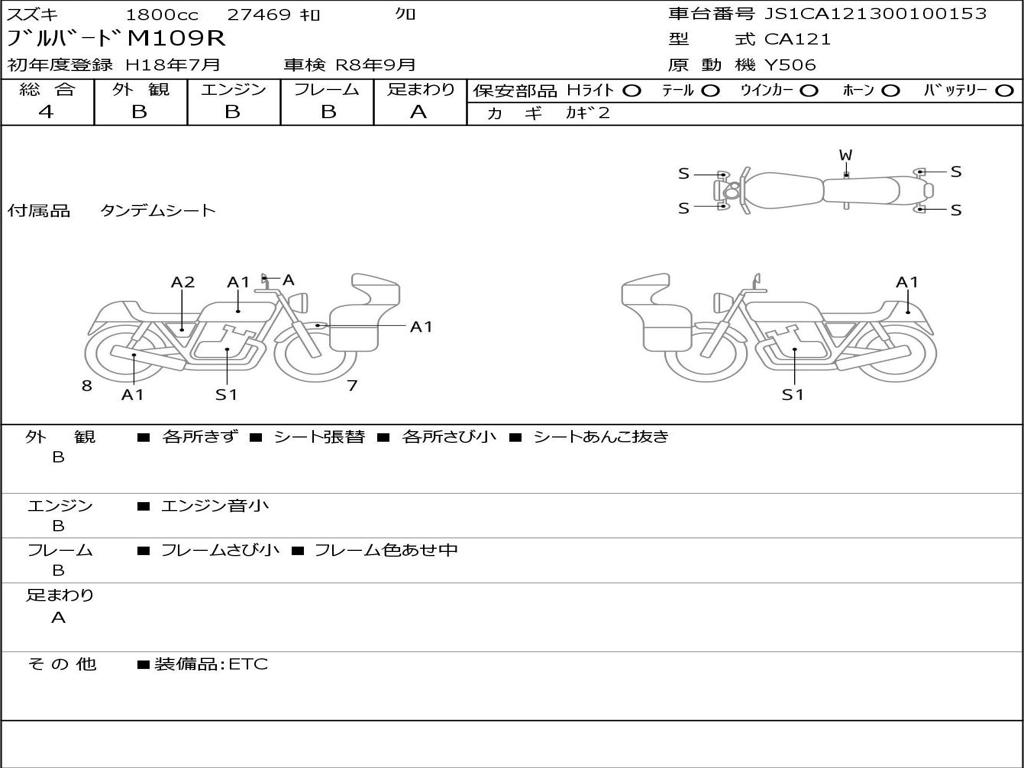 | Номер рамы / VIN | JS1CA121300100153 |