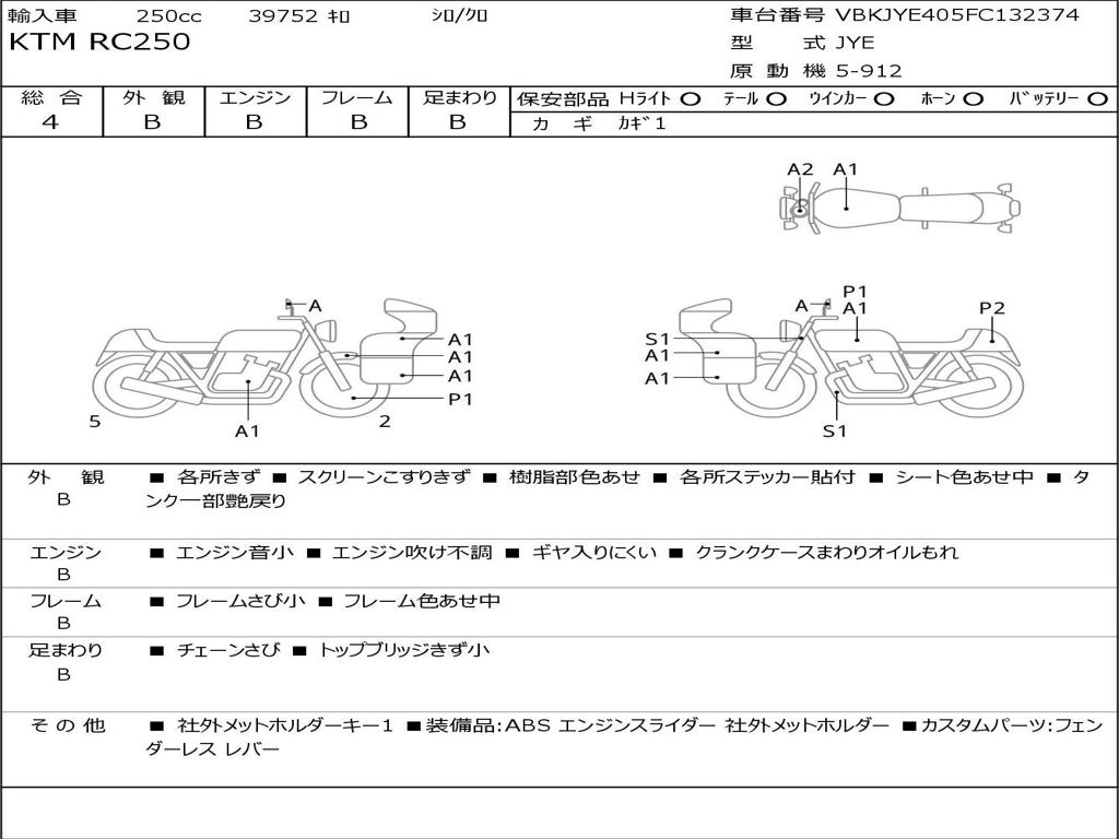 | Номер рамы / VIN | VBKJYE405FC132374 |