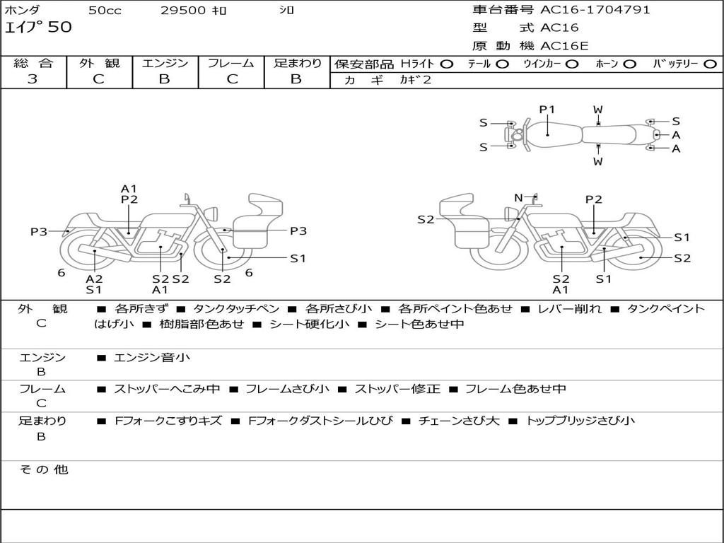 | Номер рамы / VIN | AC16-1704791 |