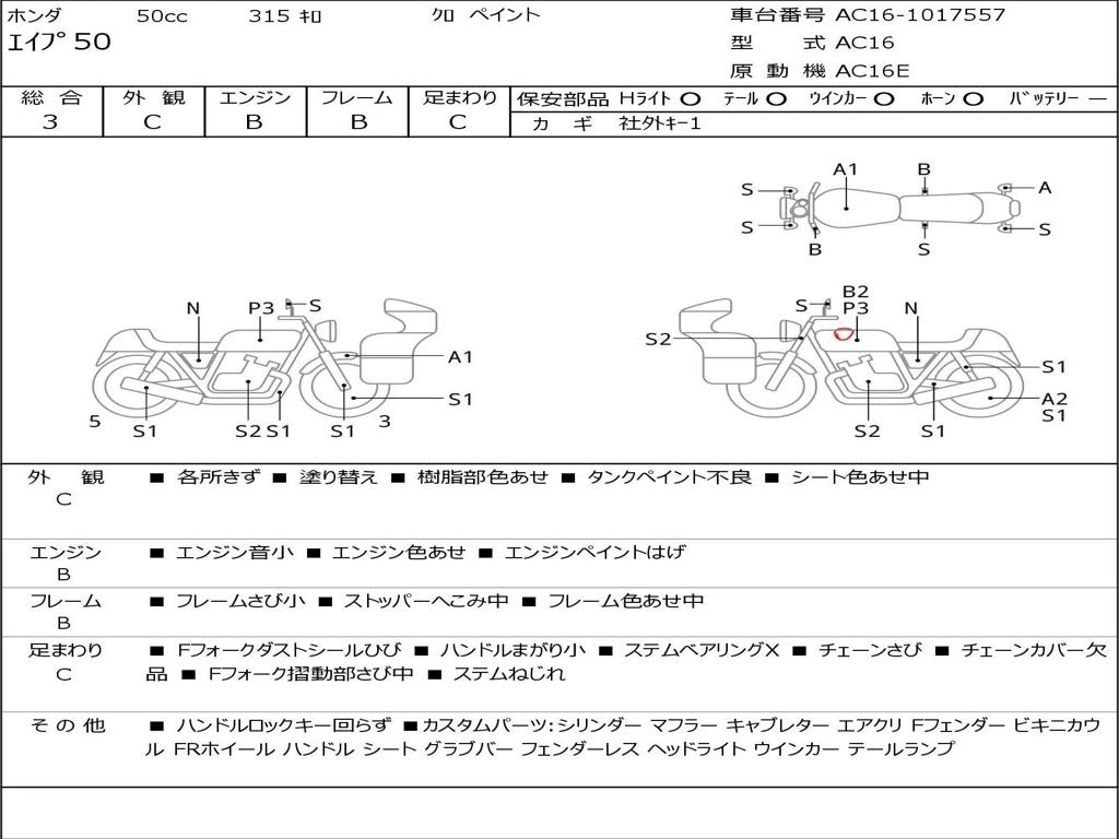 | Номер рамы / VIN | AC16-1017557 |