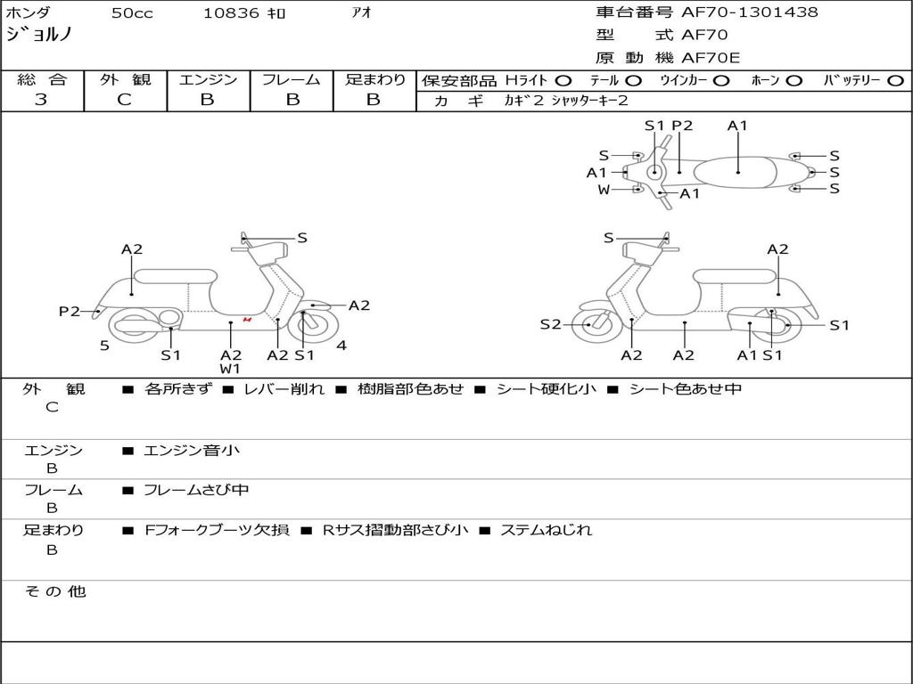 | Номер рамы / VIN | AF70-1301438 |