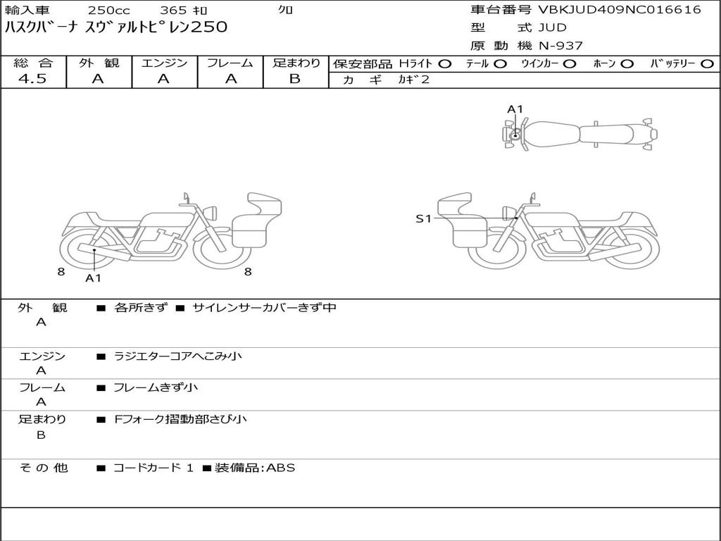 | Номер рамы / VIN | VBKJUD409NC016616 |