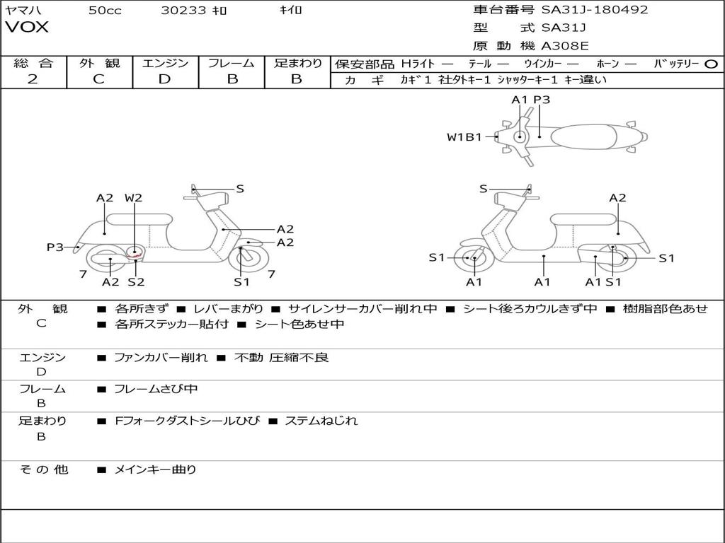 | Номер рамы / VIN | SA31J-180492 |