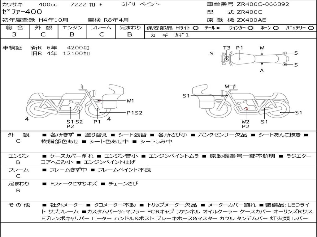 | Номер рамы / VIN | ZR400C-066392 |