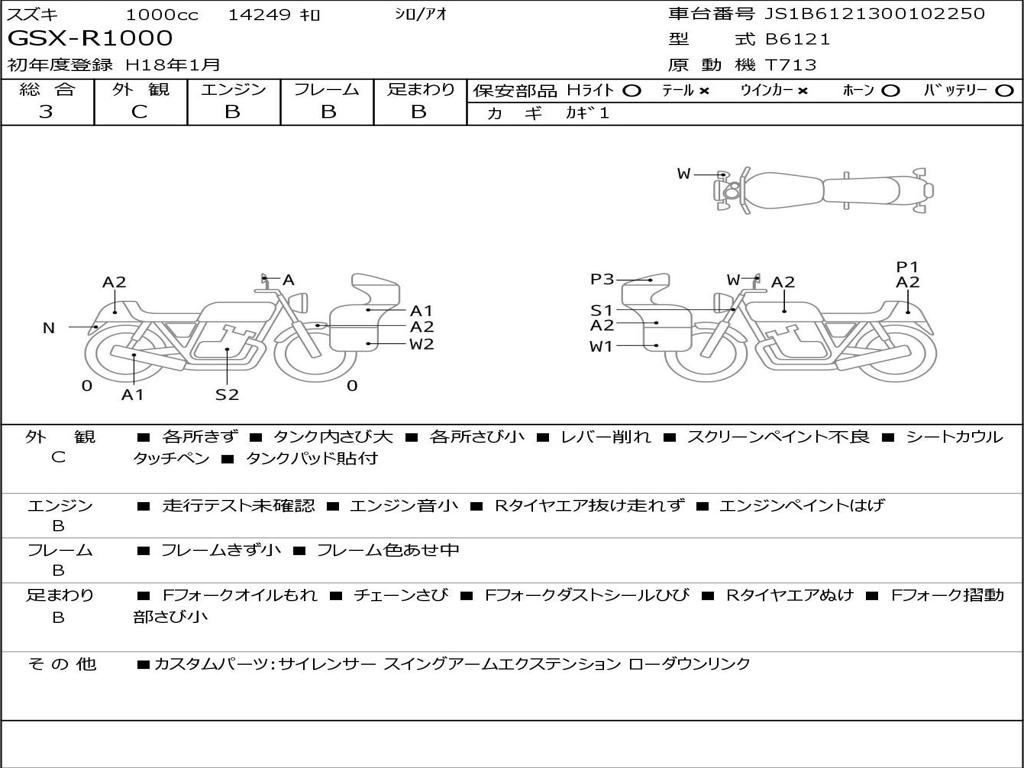 | Номер рамы / VIN | JS1B6121300102250 |