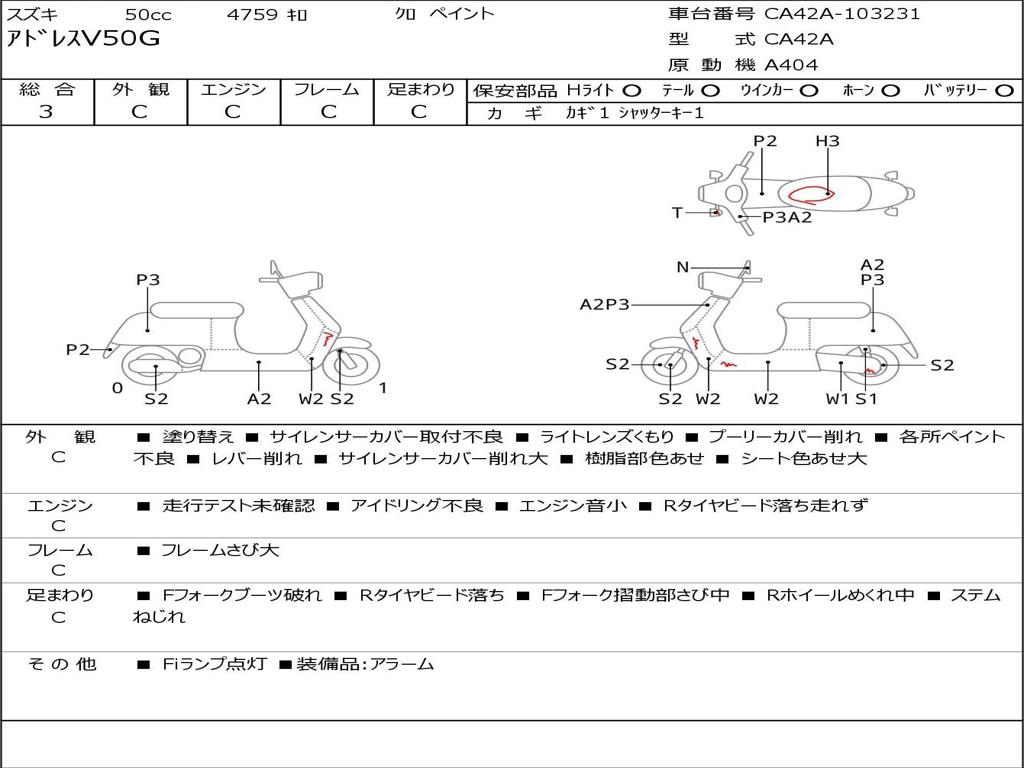 | Номер рамы / VIN | CA42A-103231 |