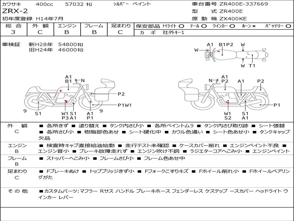 | Номер рамы / VIN | ZR400E-337669 |