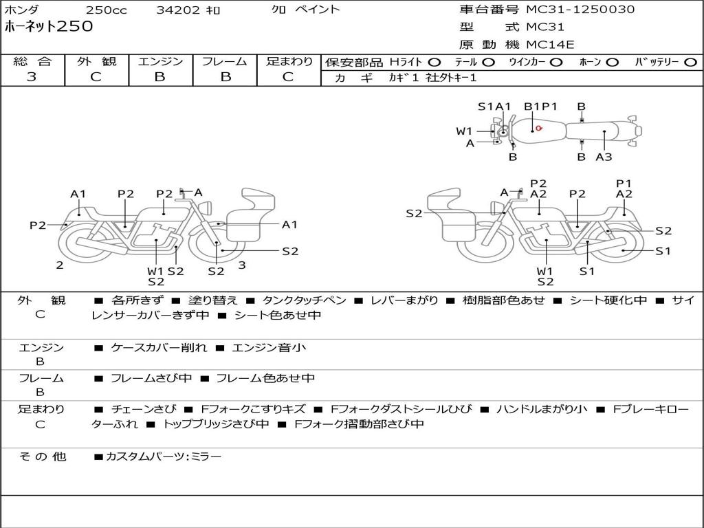 | Номер рамы / VIN | MC31-1250030 |