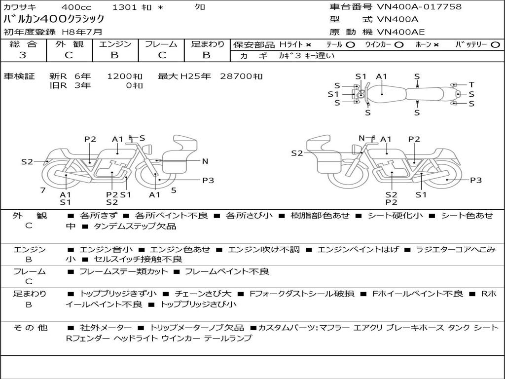 | Номер рамы / VIN | VN400A-017758 |