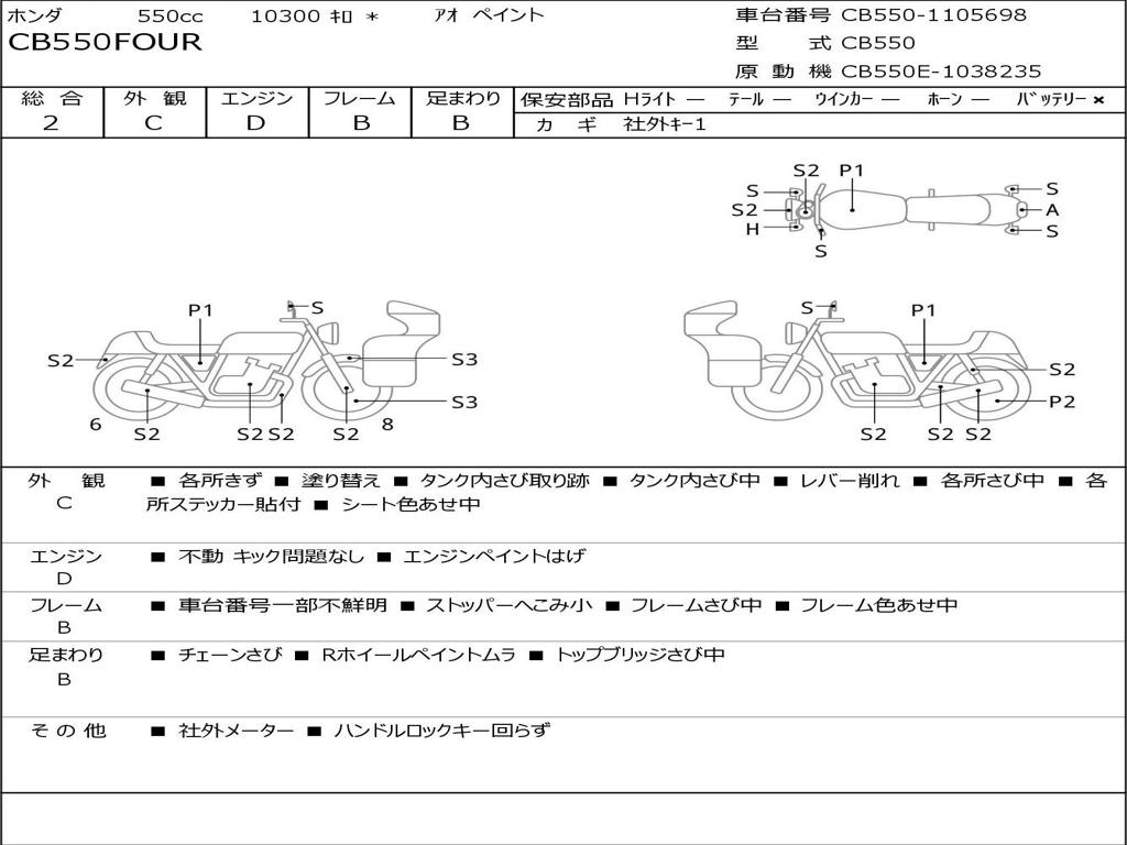 | Номер рамы / VIN | CB550-1105696 |