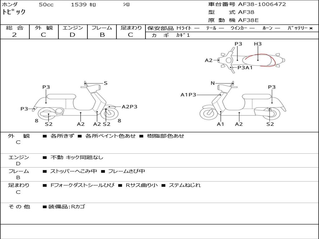| Номер рамы / VIN | AF38-1006472 |