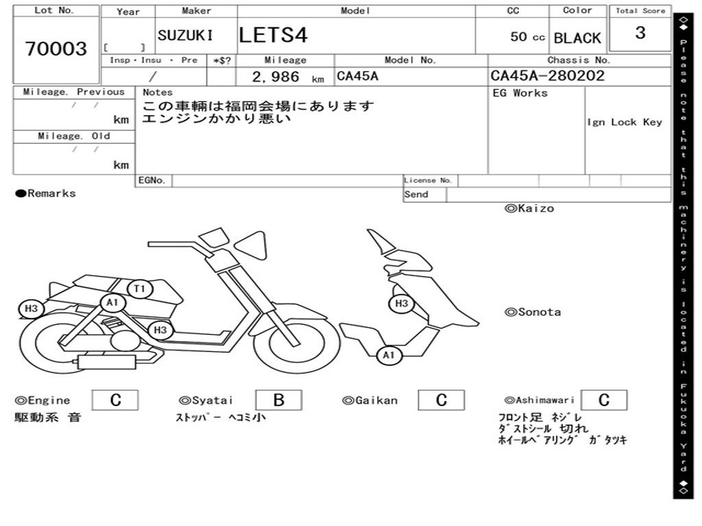 | Номер рамы / VIN | CA45A-280202 |