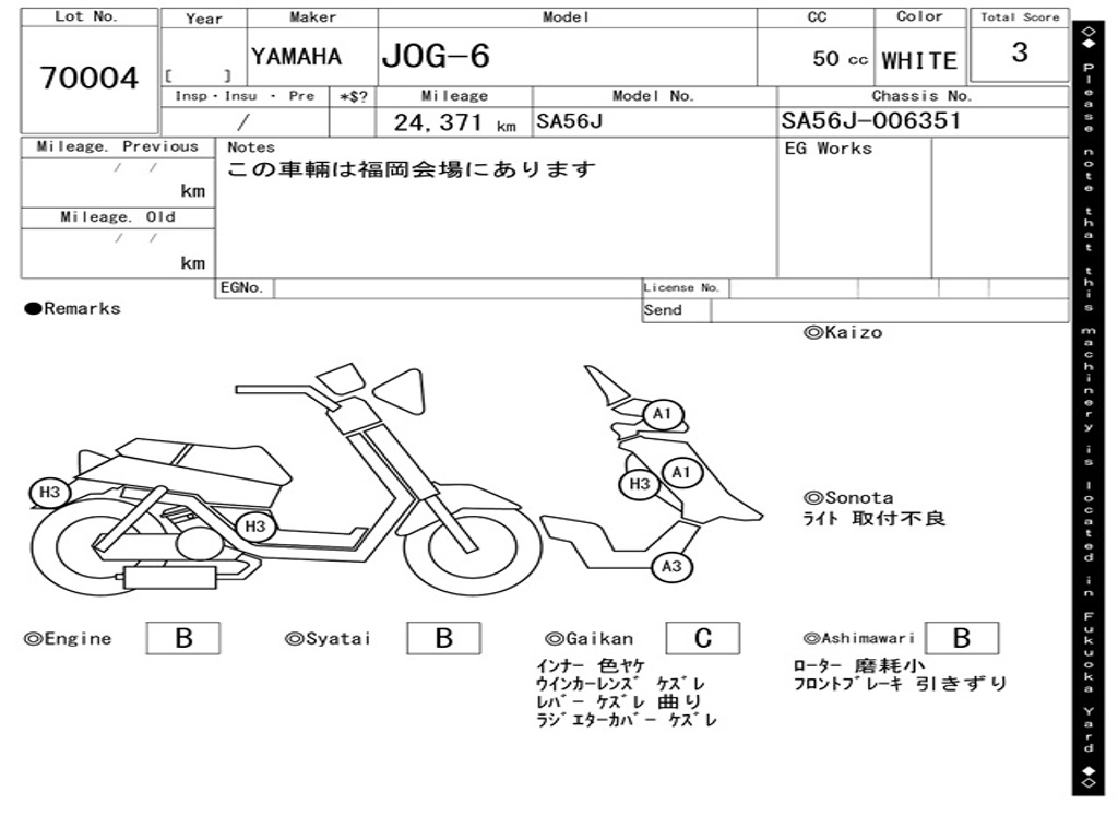 | Номер рамы / VIN | SA56J-006351 |