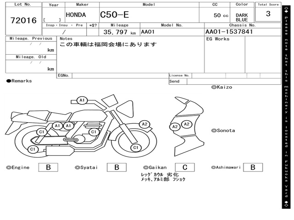 | Номер рамы / VIN | AA01-1537841 |