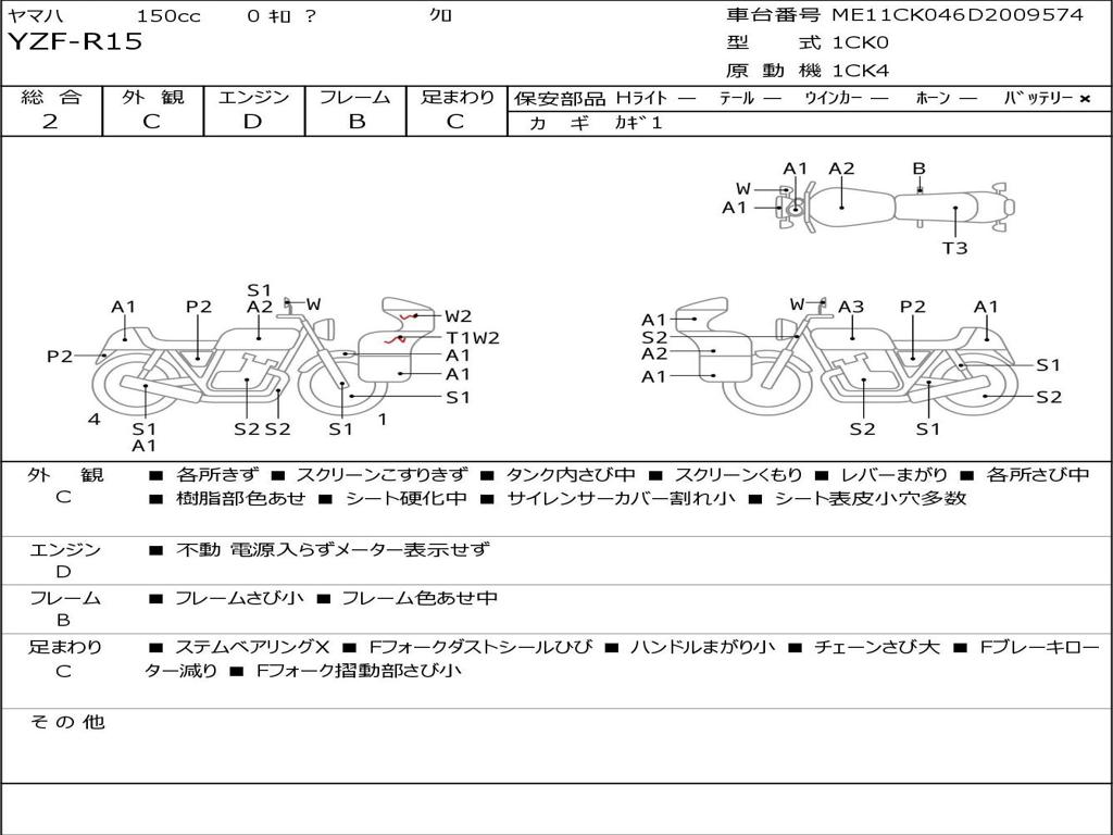 | Номер рамы / VIN | ME11CK046D2009574 |