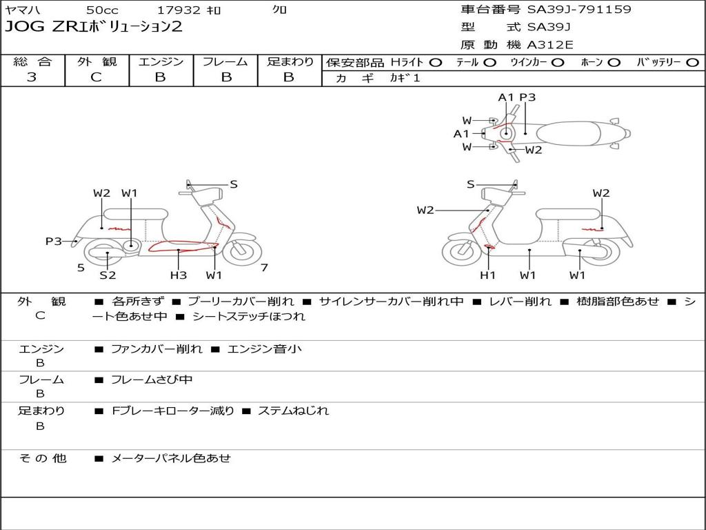 | Номер рамы / VIN | SA39J-791159 |