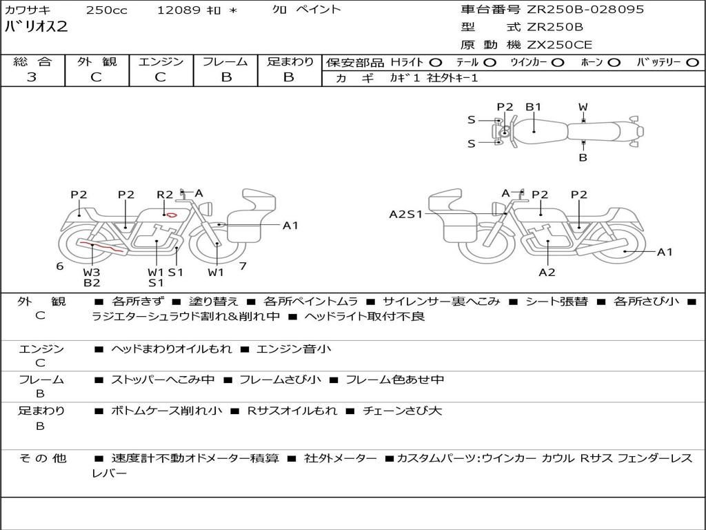 | Номер рамы / VIN | ZR250B-028095 |